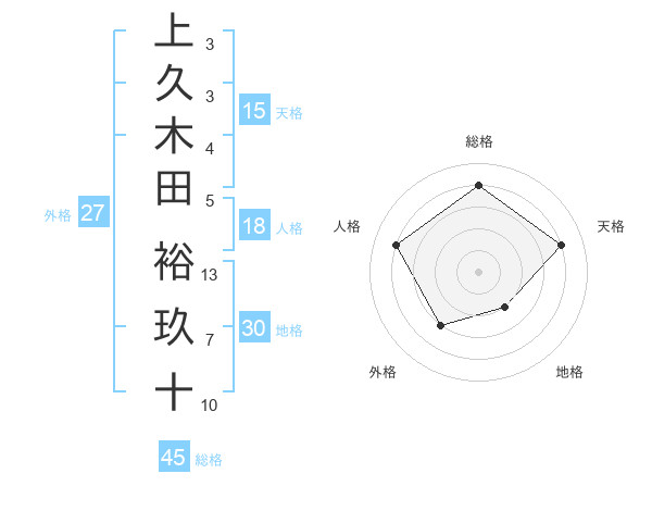上久木田 裕玖十さんを姓名の画数から五運を鑑定