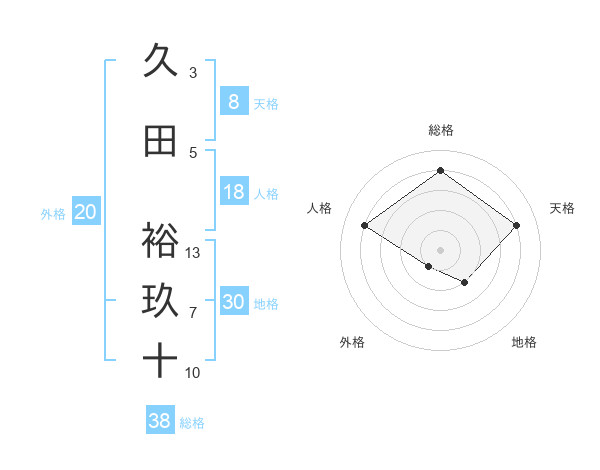 久田 裕玖十さんを姓名の画数から五運を鑑定