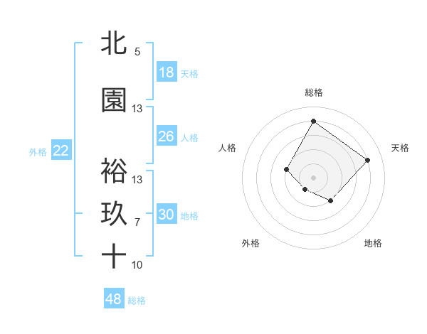 北園 裕玖十さんの外格は22画の1点!