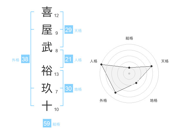 喜屋武 裕玖十さんの総格は59画の1点!