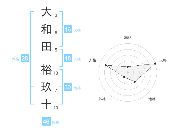 大和田 裕玖十さんを姓名の画数から五運を鑑定