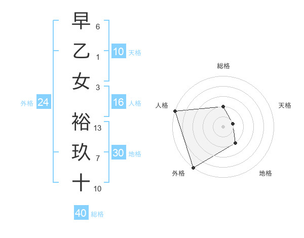 早乙女 裕玖十さんを姓名の画数から五運を鑑定
