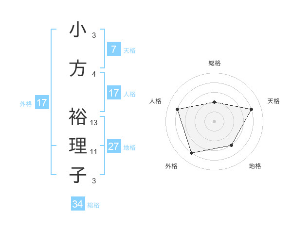 小方 裕理子さんを姓名の画数から五運を鑑定