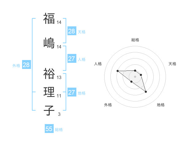 福嶋 裕理子さんを姓名の画数から五運を鑑定