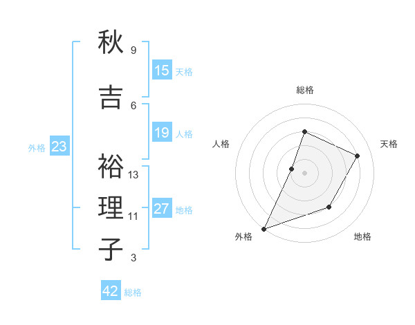 秋吉 裕理子さんを姓名の画数から五運を鑑定