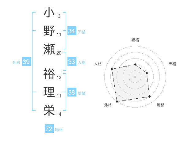 小野瀬 裕理栄さんを姓名の画数から五運を鑑定