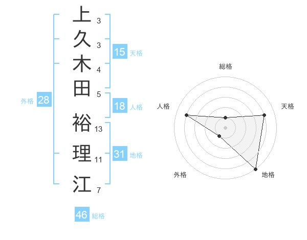 上久木田 裕理江さんを姓名の画数から五運を鑑定