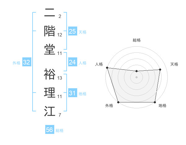 二階堂 裕理江さんを姓名の画数から五運を鑑定
