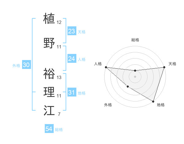 植野 裕理江さんを姓名の画数から五運を鑑定