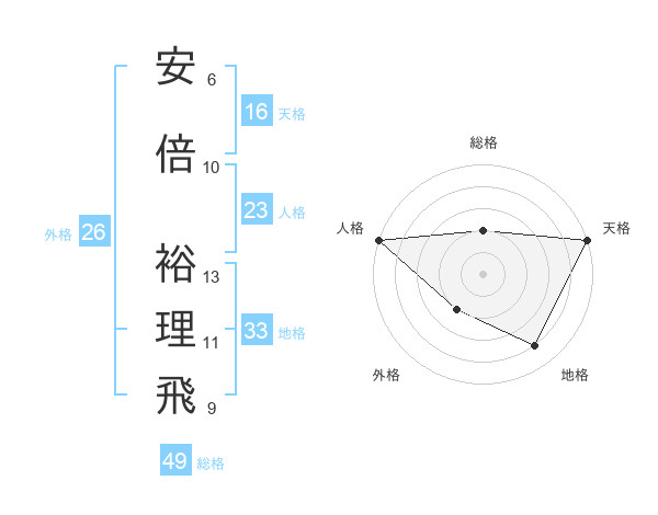 安倍 裕理飛さんの総格は49画の2点!