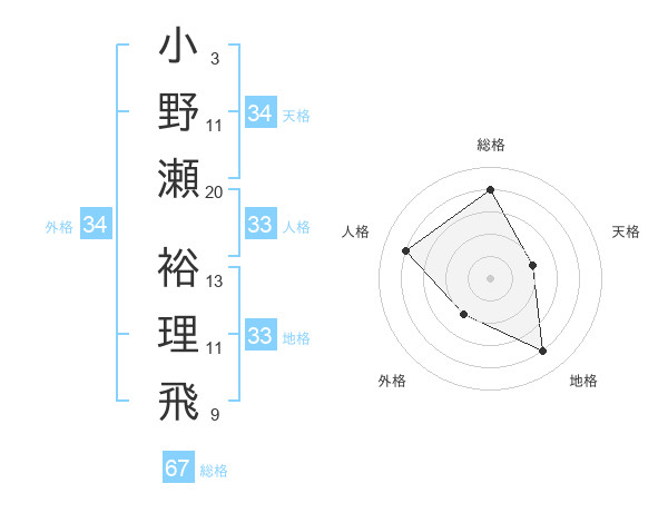 小野瀬 裕理飛さんを姓名の画数から五運を鑑定