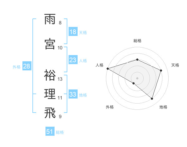 雨宮 裕理飛さんの総格は51画の3点