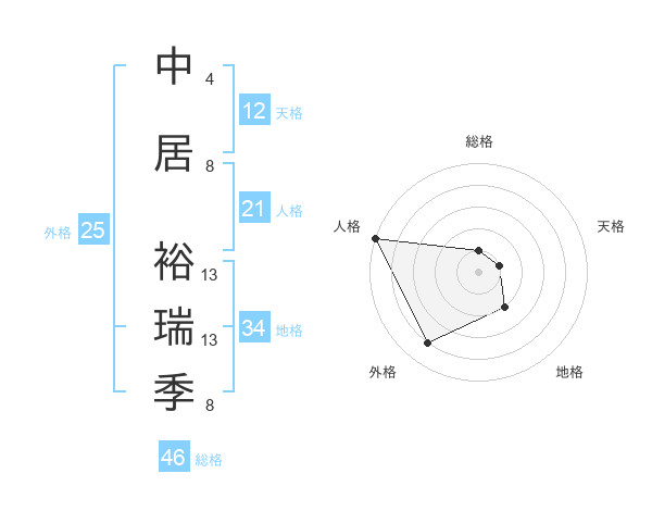 中居 裕瑞季さんを姓名の画数から五運を鑑定