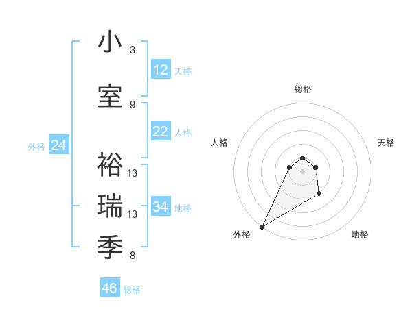小室 裕瑞季さんを姓名の画数から五運を鑑定