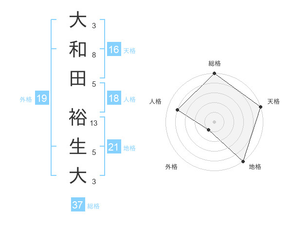 大和田 裕生大さんを姓名の画数から五運を鑑定