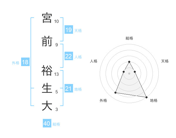 宮前 裕生大さんを姓名の画数から五運を鑑定
