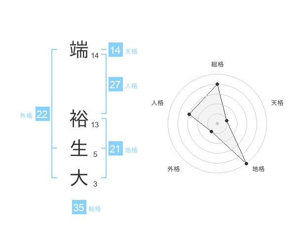 端 裕生大さんの地格は21画の5点!