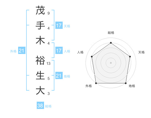 茂手木 裕生大さんの総格は38画の4点!