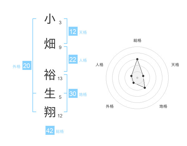 小畑 裕生翔さんを姓名の画数から五運を鑑定