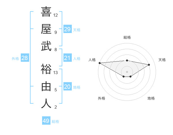 喜屋武 裕由人さんを姓名の画数から五運を鑑定