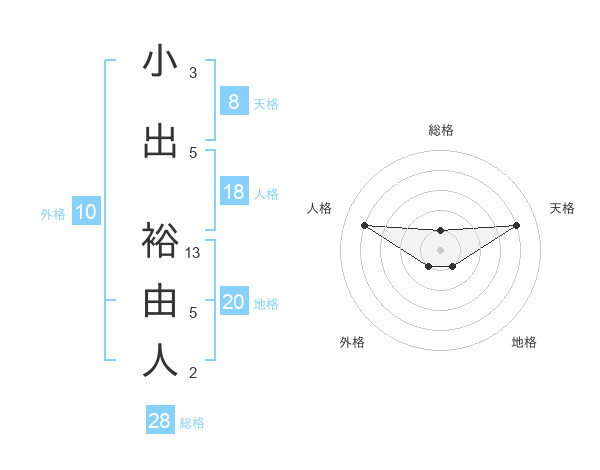 小出 裕由人さんを姓名の画数から五運を鑑定