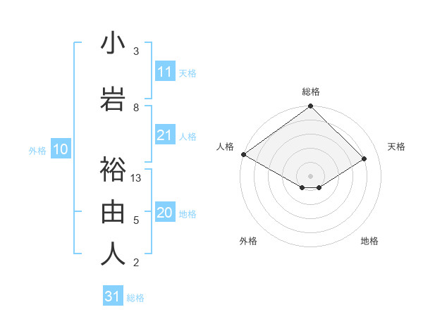 小岩 裕由人さんの総格は31画の5点!