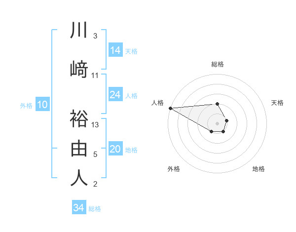 川﨑 裕由人さんを姓名の画数から五運を鑑定