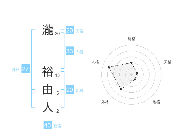瀧 裕由人さんを姓名の画数から五運を鑑定