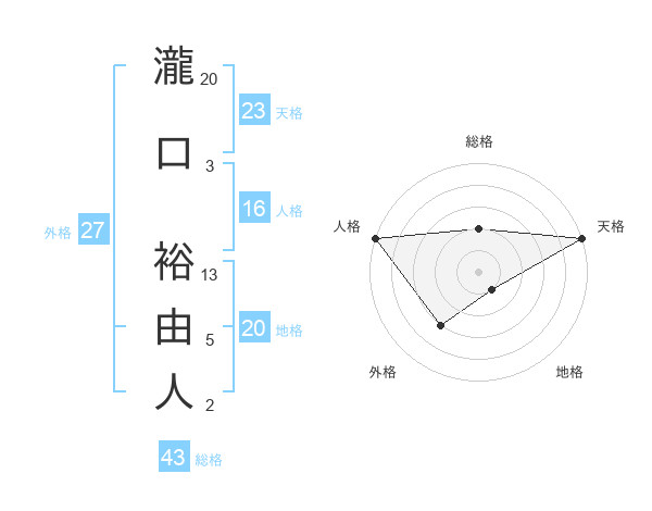 瀧口 裕由人さんを姓名の画数から五運を鑑定