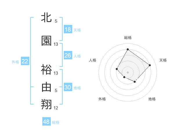 北園 裕由翔さんを姓名の画数から五運を鑑定