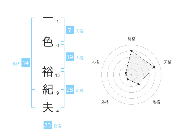 一色 裕紀夫さんを姓名の画数から五運を鑑定