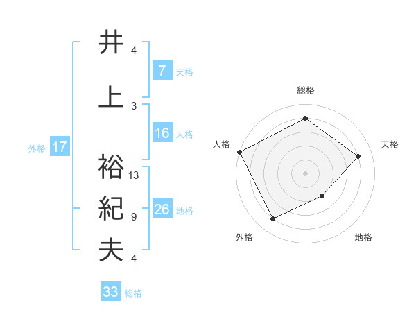 井上 裕紀夫さんを姓名の画数から五運を鑑定