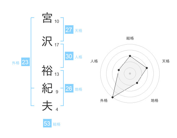 宮沢 裕紀夫さんを姓名の画数から五運を鑑定