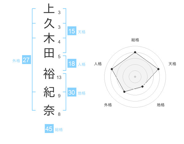 上久木田 裕紀奈さんの総格は45画の4点