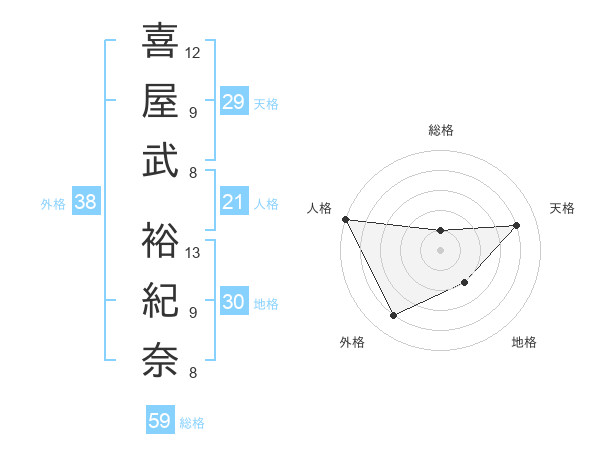 喜屋武 裕紀奈さんの天格は29画の4点!