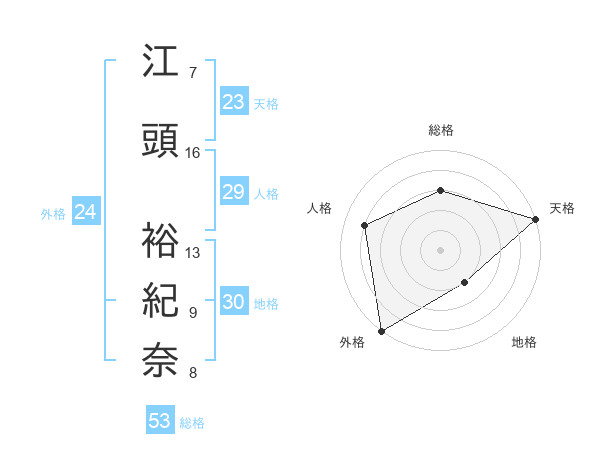 江頭 裕紀奈さんを姓名の画数から五運を鑑定