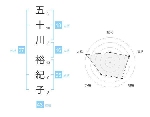 五十川 裕紀子さんの総格は43画の2点!