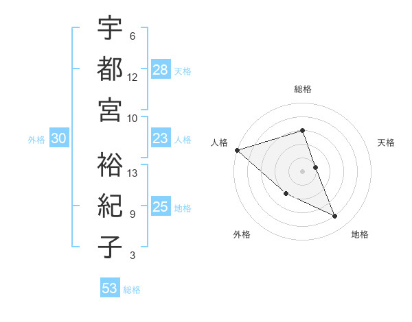 宇都宮 裕紀子さんを姓名の画数から五運を鑑定