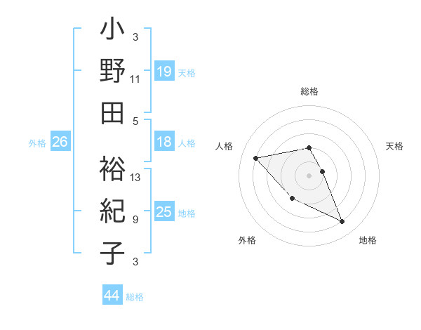 小野田 裕紀子さんの総格は44画の2点!