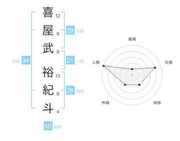 喜屋武 裕紀斗さんを姓名の画数から五運を鑑定