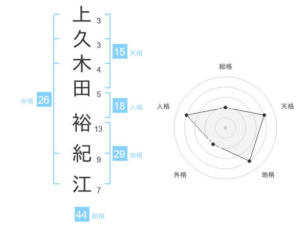 上久木田 裕紀江さんの天格は15画の4点!