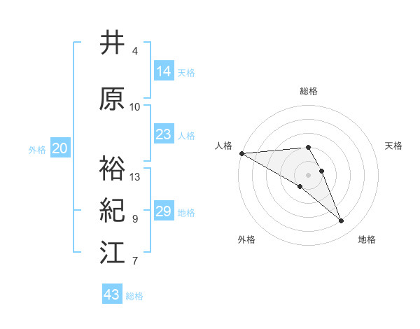 井原 裕紀江さんを姓名の画数から五運を鑑定