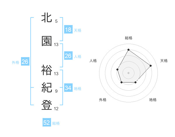 北園 裕紀登さんを姓名の画数から五運を鑑定