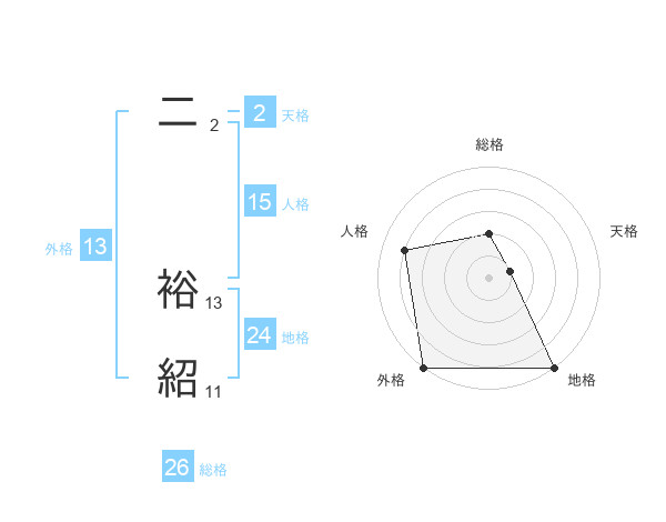 二 裕紹さんの外格は13画の5点!