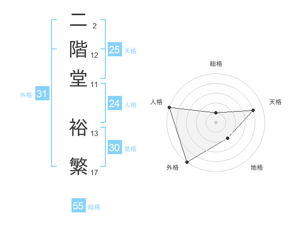 二階堂 裕繁さんの総格は55画の1点!