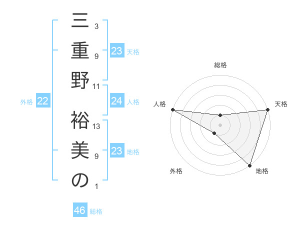 三重野 裕美のさんを姓名の画数から五運を鑑定