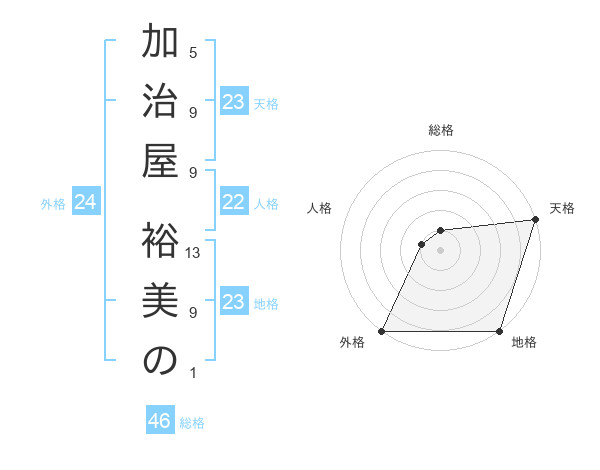 加治屋 裕美のさんの天格は23画の5点!