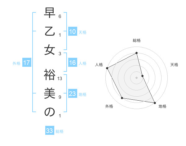 早乙女 裕美のさんの総格は33画の4点
