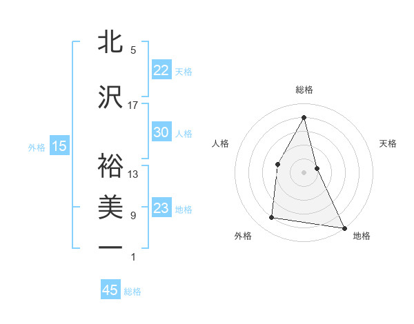 北沢 裕美一さんの総格は45画の4点!