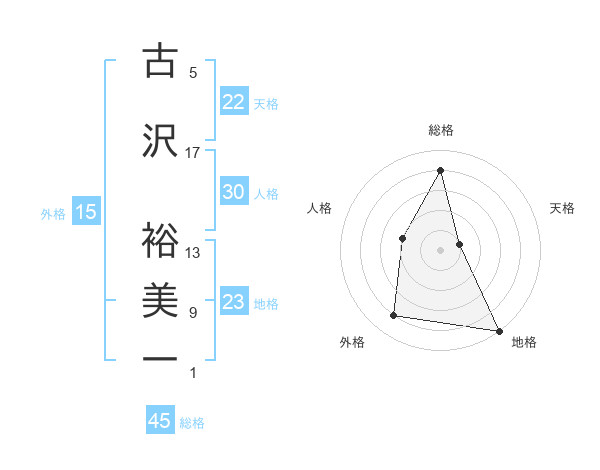 古沢 裕美一さんを姓名の画数から五運を鑑定